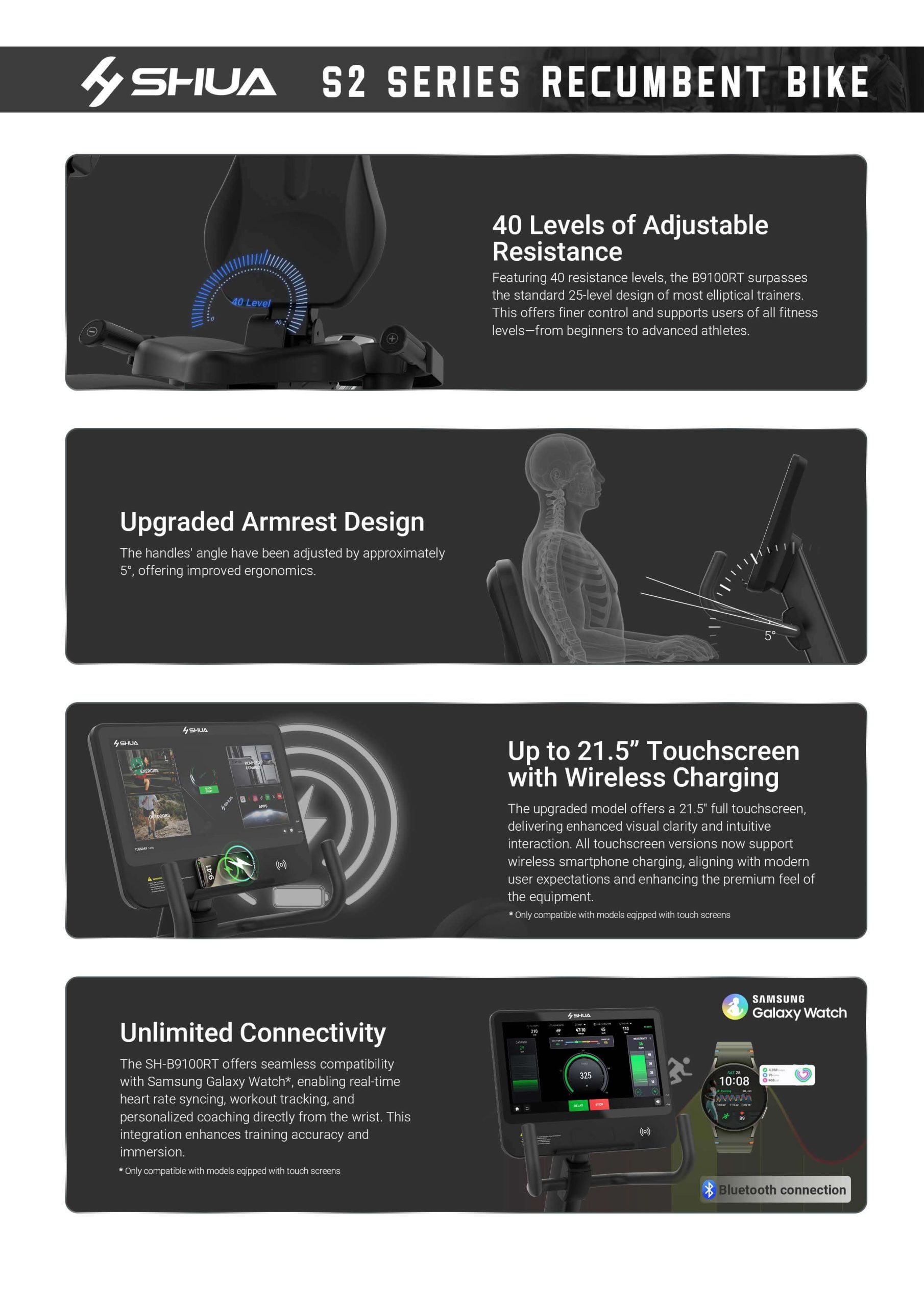 SH-B9100RT recumbent bike with durability, performance, efficiency and stability is an ideal option for all exercisers who are looking forward a seated position and enhanced engagement. A copious of intuitive console choices provide entertainment and intuitive exercise tracking.